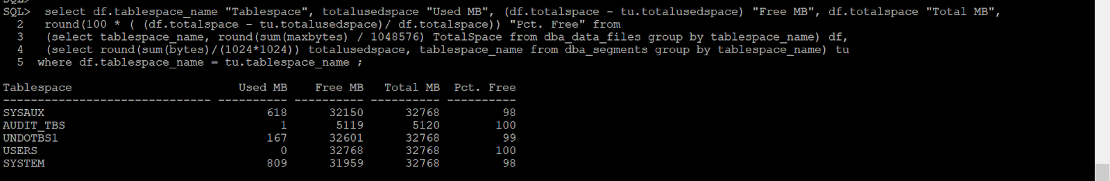 Below Test I have done for those people, who are curious to know or monitor free and total tablespace size when autoextend on. Because most of our DBA use below generic script to monitor tablespace which actually don't show till what extent or size this tablespace will grow and they add another datafile.